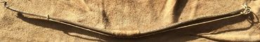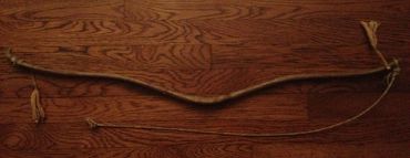 There are also 4 Paiute bows listed. There are also 4 Paiute bows listed. 2 of these were collected by John W Powell during his travels in southern Utah and the Colorado River area in the 1860's. The first one is listed as cow horn also. This makes me almost sure that every bow he claims to be cow horn must have been mistaken and was bighorn, as the Paiutes had many bighorn and even elkhorn bows but not cow. It is spliced in the middle and the nocks are just a taper with a buckskin band below. It is unstrung and has a smooth curve. 30 inches long, 1 1/32 x 5/8 above the grip, 29/32 x 15/32 mid limb and 15/32 x 15/32 below the nock. The next one is 33" long, 1 1/16 x 9/16 center, 15/16 x 1/2 mid limb and 1/2 x 9/32 1 inch below the tip. The nocks of this bow were formed by sinew extending past the horn and curled up, just as the Miwok bows of California. The sinew is covered with pitch. The last one is listed as coming from the Digger Indians of California. Digger was also a slang name given to many Paiutes. It is sharply reflexed. Nocks are like above with sinew wrap. The bow is wrapped with fine sinew the entire bow. 33" long, 15/16 x 17/32 center, 7/8 x 7/16 mid limb and 15/32 x 5/16 below nock. Another Paiute horn bow in the Smithsonian is 31" long, width at handle- 1 1/8, 1" mid limb and 1/2" below the nock. It has a shallow c reflex and a buckskin handle. Perhaps the oldest surviving piece of Paiute horn bow came from a rock shelter excavation in Elko county Nevada near the Utah boarder. It is 22.3cm of the tip of a old bighorn bow. Very weathered but still has a sinew wrap and signs of more. It is 12 x 24.5 mm thick and wide. The tip is rounded and the cross section is half round with the flat back showing signs of sinew.