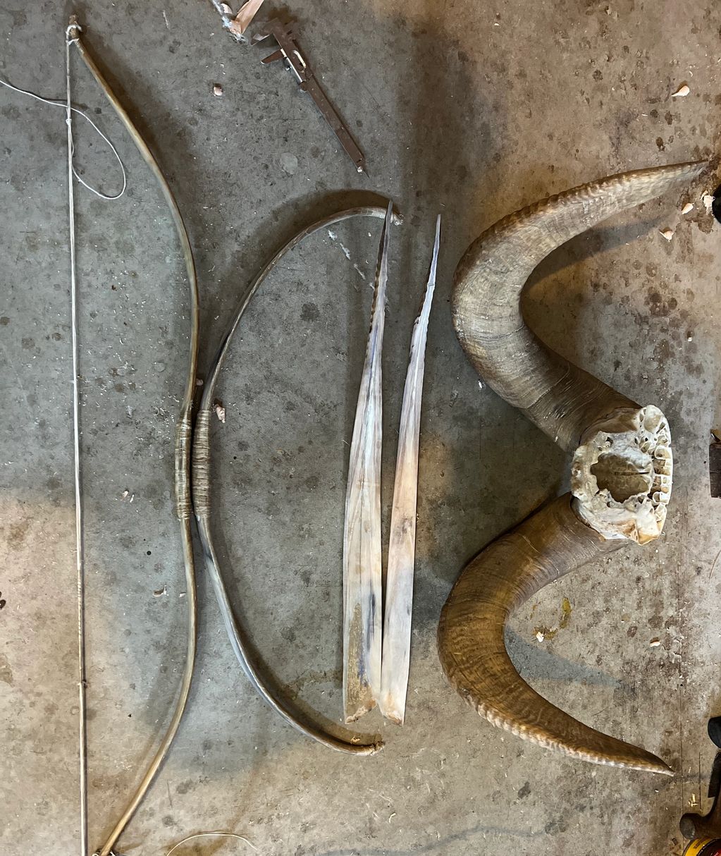 The first thing to making a horn bow is finding horns. There are 3 types of bighorn sheep in the lower 48. Rocky Mt, Desert and California. All of these will make a great bow. The minimum size needed is about 23" along the outside curl. The longer the better, as you can cut through flaws and twists. A nice set of horns will run you about $500-2000. I've also used Alaskan Dall sheep and Canadian stone sheep horns. These are another native American sheep species with a range north of the bighorn. These horns are a little narrower but otherwise almost identical and usually run a couple hundred less for a nice set, if you can find them. I would caution against buying on ebay. There are many things that you have to avoid, bug damage, dry and cracked, etc.. It is best to inspect these yourself. A lot of horns also have a metal plug inserted by fish and game right where the bow would be. I have used mouflon sheep horns. They work and look similar but are thinner and so hard to make a powerful bow.