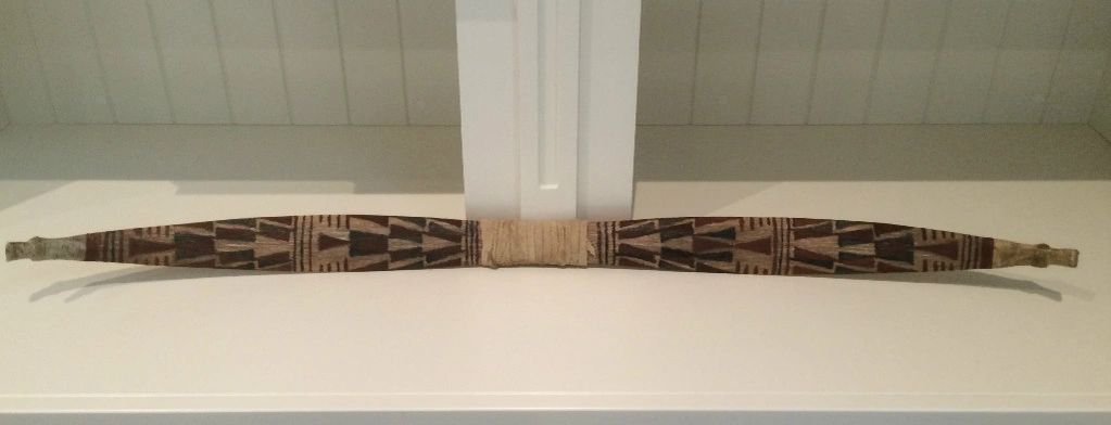 Modoc style sinew backed juniper painted with red and yellow ocher and charcoal