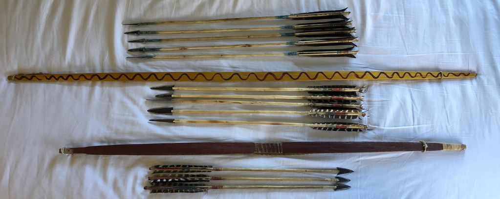 Left: Sinew backed juniper Apache style set with cane and rose arrows