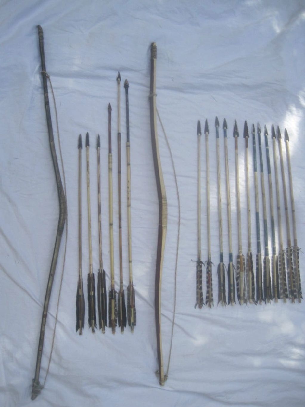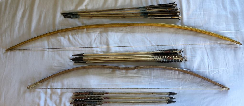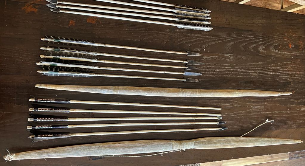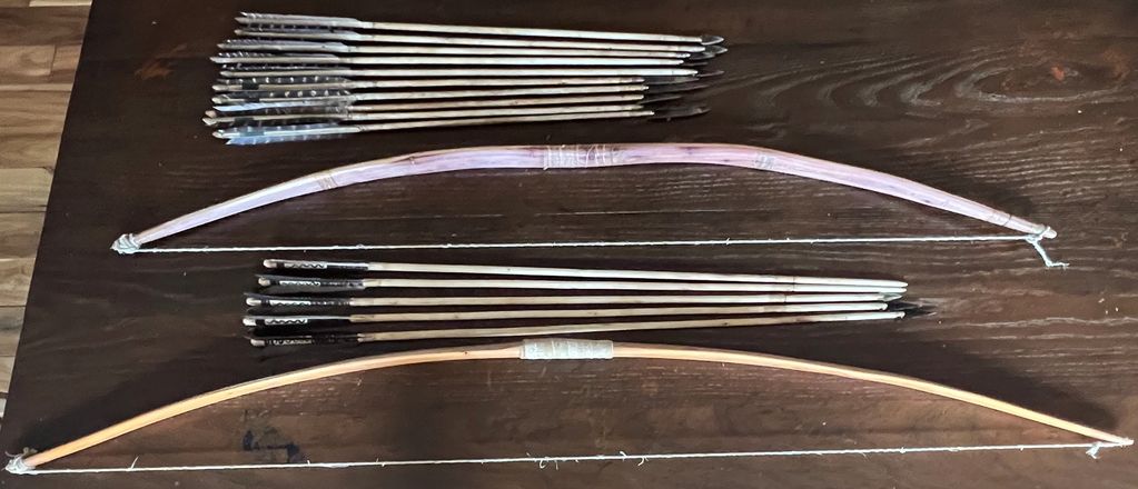 Plains style bows: Self ash, Sinew backed juniper, osage orange with dogwood arrows