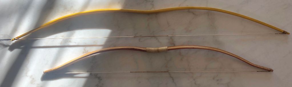Top- sinew backed juniper heartwood northern plains style. Bottom- sinew backed juniper sapwood Ishi style bow