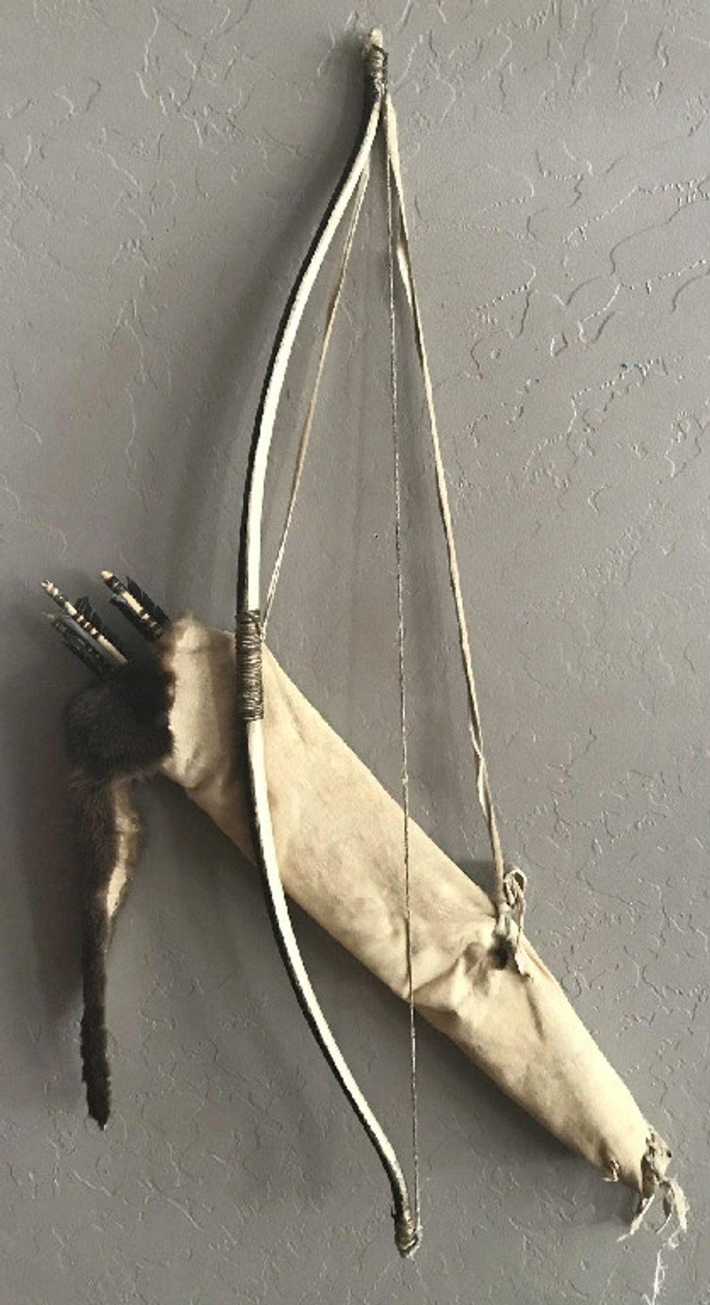 Northern plains otter quiver. Bow is Northern California(Karok / Yurok) sinew backed yew and does not go with the quiver.