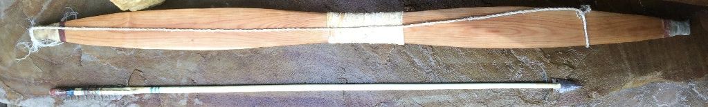 Numic: Paiute/Shoshone style sinew backed juniper with sinew coated with pitch. Phragmities and serviceberry arrows